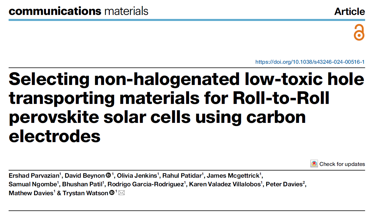 文章來(lái)源:《Selecting non-halogenated low-toxic hole transporting materials for Roll-to-Roll perovskite solar cells using carbon electrodes》