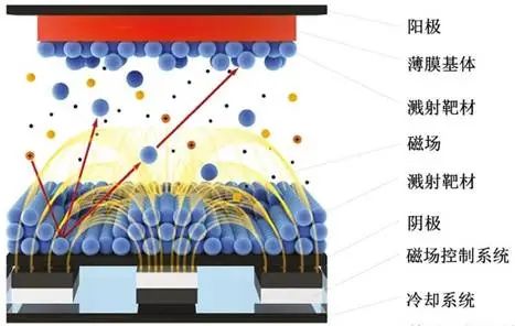 原理:在電場(chǎng)作用下,由陰極釋放的高能電子轟擊氬亞原子,并形成氬離子,帶正電的氬離子轟擊陰極,濺射的靶材原子在基地表面積聚成膜。工藝特點(diǎn):-薄膜附著力強(qiáng);-適用材料廣,包括但不限于金屬、合金;-可多層復(fù)合。應(yīng)用:半導(dǎo)體金屬布線、手機(jī)屏幕ITO導(dǎo)電膜、裝飾鍍層。